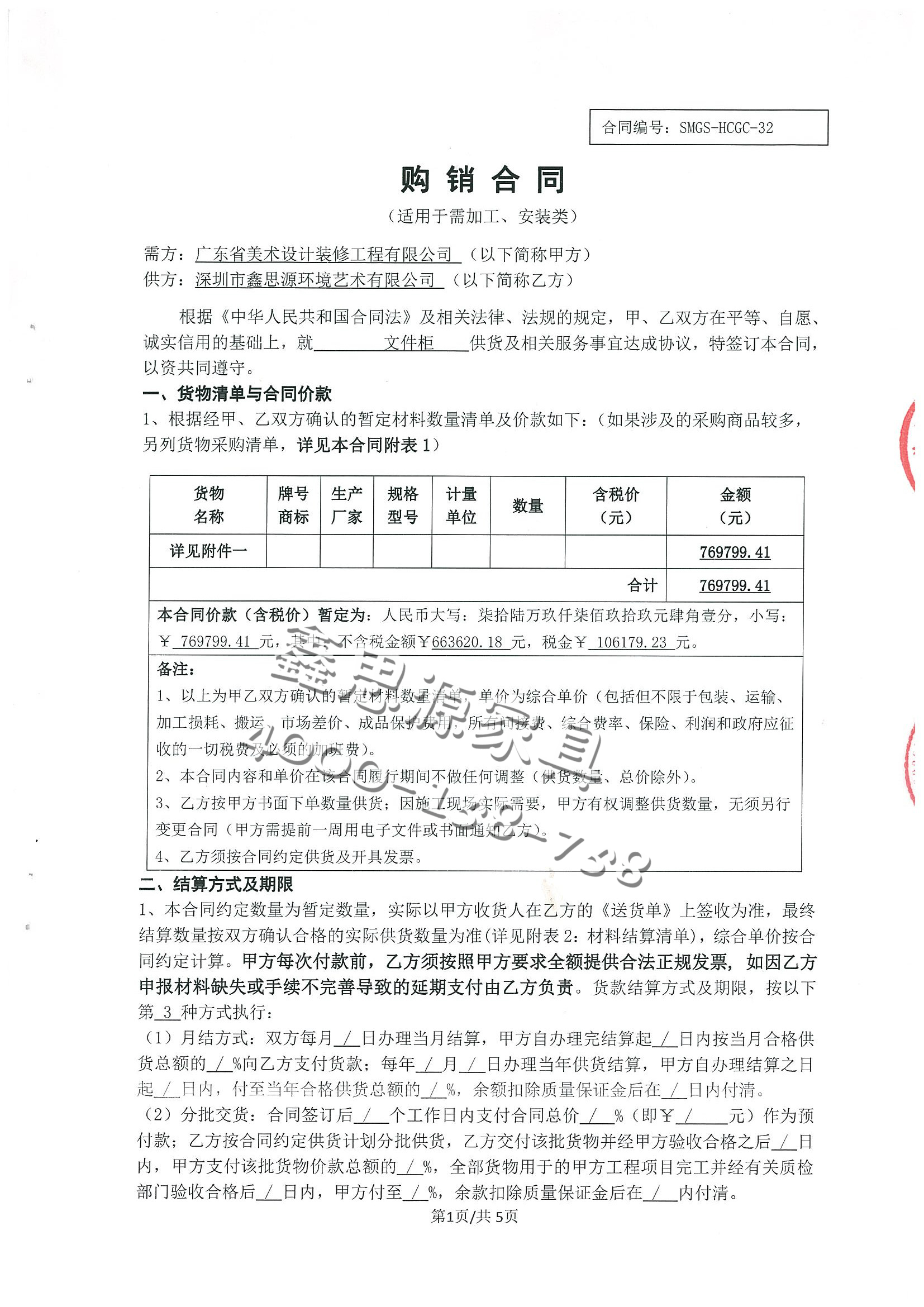 廣東省美術(shù)設(shè)計(jì)裝修工程辦公家具采購合同:
